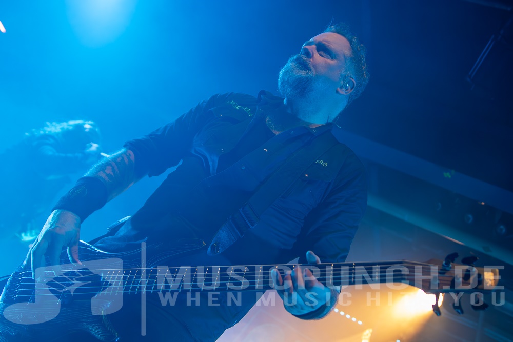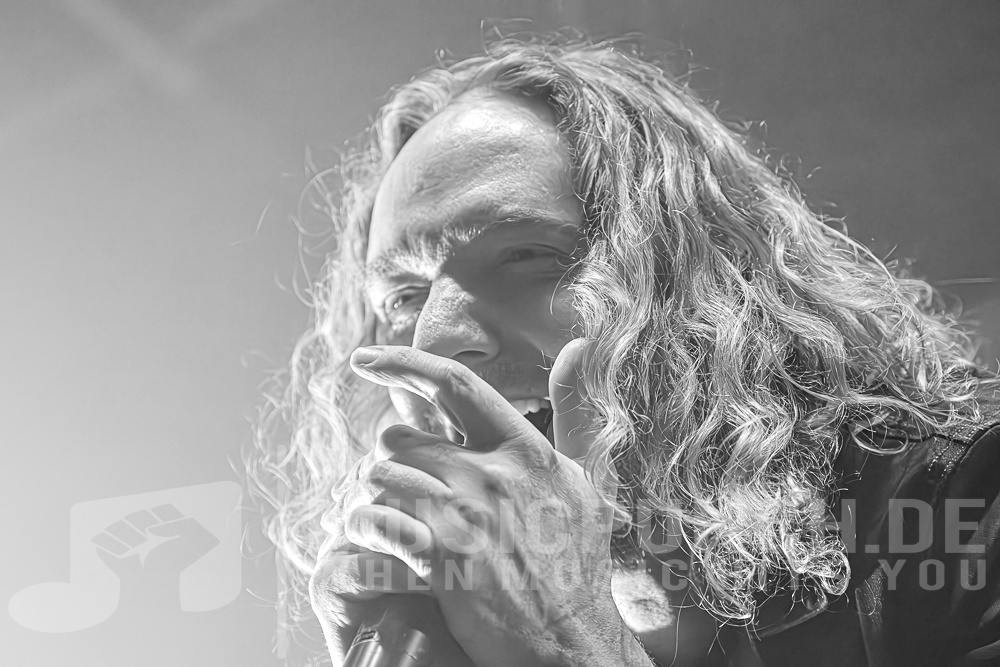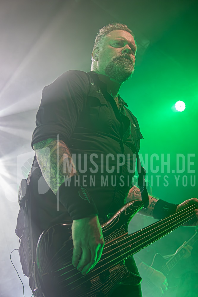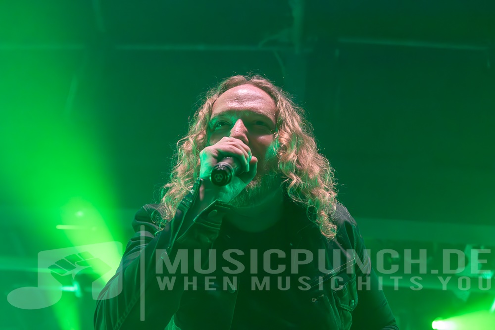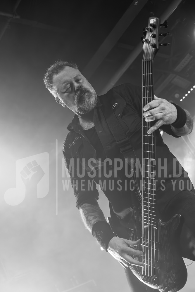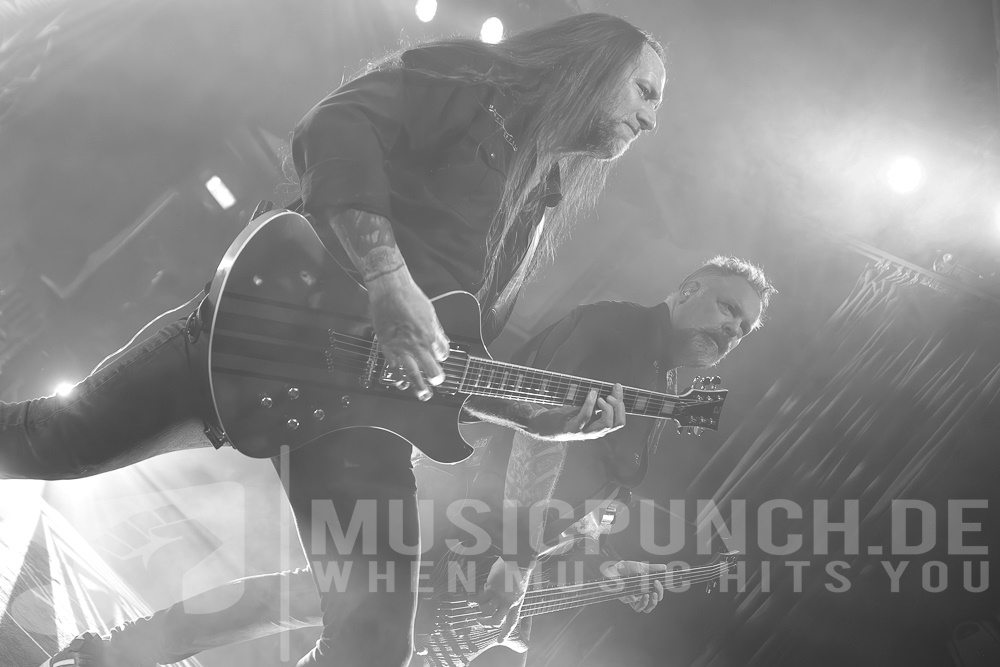 Bloodred Hourglass aus Finnland enterten um 19 Uhr die Bühne und gaben ein solides Groove-Metal-Set ab, in dem sie hauptsächlich ihr aktuelles Werk „How´s The Heart?“ supporteten und sich am Meisten über die mitgereisten Fans aus der Heimat freuten. Das Publikum nahm die Jungs gerne an und feierte mit ihnen und obwohl die Sechs es auf der Bühne schon teilweise recht eng hatten, kamen sie mit ihren Songs, wo die Gitarren im Vordergrund stehen, gut an und erfreuten sich über 40 Minuten Spielzeit.