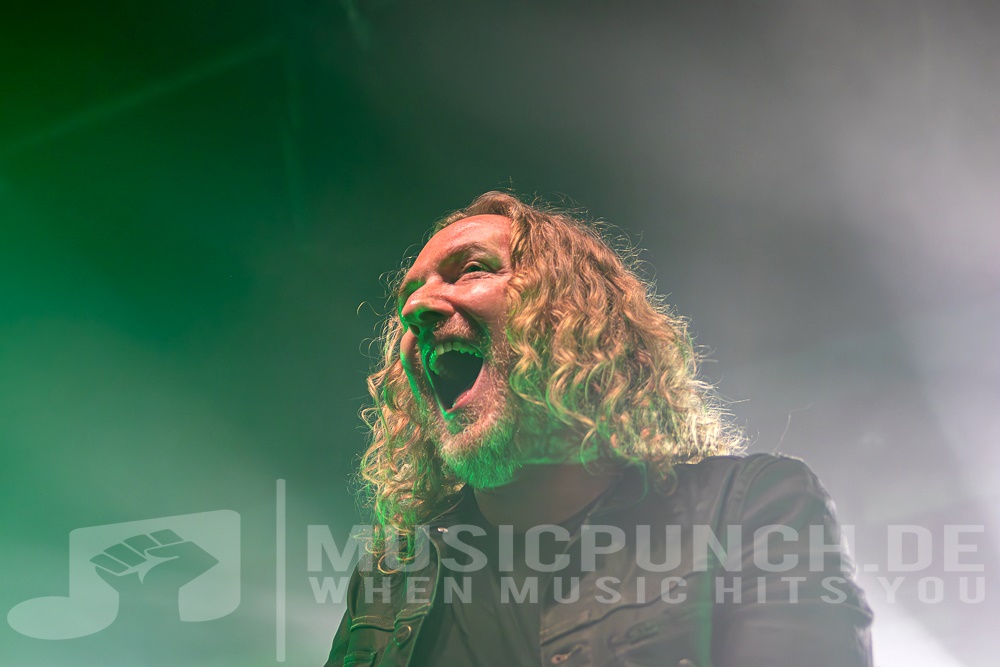 Die Altmeister des Metal unter Tausendsassa Peter Tägtgren durften um 20 Uhr ran. Sein Langzeitprojekt Pain, das schon seit 1996 existiert, verbindet gekonnt Alternative Metal mit elektronischen Ansätzen. Er ist omnipräsent auf der Bühne und will München „gleich mal den Arsch aufreißen“, motiviert immer wieder zum Mitmachen und rekrutiert Gitarrist Sebastian Svalland gleich mal im zweiten Song „Don´t Wake The Dead“ als Sabaton-Frontman Joakim, was dieser auch eindrucksvoll umsetzt. Musikalisch setzt Peter mit seinen Jungs auf Songs wie „Zombie Slam“, „Suicide Machine“, „Same Old Song“, „Let Me Out“ oder „The Great Pretender“ und fürs Auge sind die kleinen Shows bei „Go With The Flow“ im Strand-bzw. Regenoutfit, Glitzerlooks und Wasserbälle bei „Party In My Head“, die Blues-Nummer auf Barhockern und Cowboyhut „Have A Drink On Me“ und der Alien im Fotograben beim letzten Stück „Shut Your Mouth“. Dieser scheint die Band so zu paralysieren, dass es sie alle umhaut und erst durch das Soli von Schlagzeuger Reidar Horghagen wieder auferstehen. Grandios, Peter versteht es immer noch die Massen zu begeistern – und das auch noch nach so langer Zeit! Diese Stunde hatte er mehr als verdient!