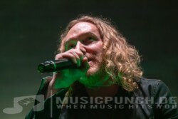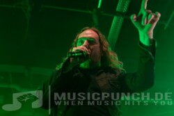 Begeistert und schon fast sprachlos über soviel Fanliebe switchten die Jungs gekonnt zwischen „old stuff“ und den Songs ihrer aktuellen Scheibe „March Of The Unheard“ und begeisterten während des ganzen 75minütigen Gigs die Crowd. In der Setlist war unter andern dabei „Feel What I Believe“, „In Broken Trust“, „Detonate“, „Conditional“, „A Truth Worth Lying For“, „What We Become“ oder „Last Of Our Kind“. Die Band sprühte vor Spaß und Freude, wie ihre Fans, allen voran Frontman Mikael Stanne, der über das Grinsen gar nicht mehr heraus kam, ständig in allen Ecken mit seinen Fans sang und zwischendurch auch mal ein Autogramm verteilte. Seine Jungs, Niclas Englin und Patrik Jensen (für Jesper Strömblad) an der Gitarre und Peter Iwers am Bass taten es ihm gleich und mussten die Menge kaum zum Mitmachen motivieren – die nahmen das Ruder lieber selbst in die Hand und sangen den Jungs ihren Chorus bei „The Needles End“ minutenlang vor, so dass The Halo Effect sicherlich schon überlegten, ob das Publikum den Rest der Show bestreiten will. Sie waren schlichtweg überwältigt und Mikael Stanne bekam gerade nur noch ein „What the Hell Munich“ heraus. Dass mit den Fans „a good time“ haben war schlichtweg untertrieben, die Euphorie ebbte bis zum Schluss nicht ab. Das der Sound zum Schluss nicht mehr so gut war und die Band sich zwei Mal von der Bühne verdrückte nahm ihnen keiner krumm. Und selbst als alles an Plektren und Drumsticks verschleudert war, die Band Handshakes mit den Fans gemacht hatte und Sänger Mikael Stanne die erste Reihe abklatschte, wollten die 1500 „ihre“ Band nicht gehen lassen. Sensationell und einfach unglaublich! Wer da nicht dabei war, hat definitiv was verpasst!