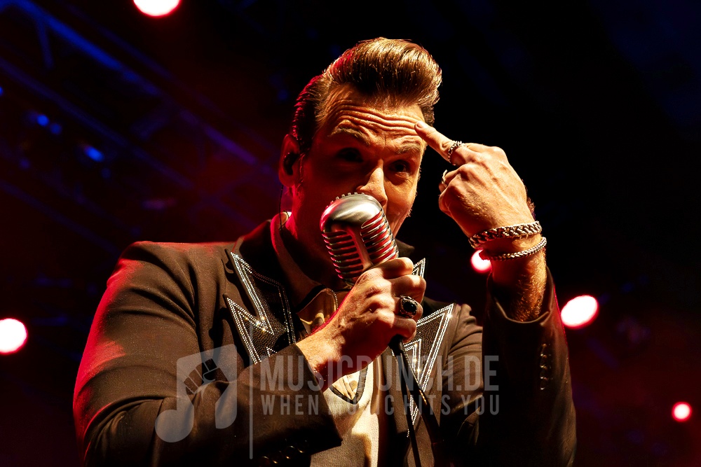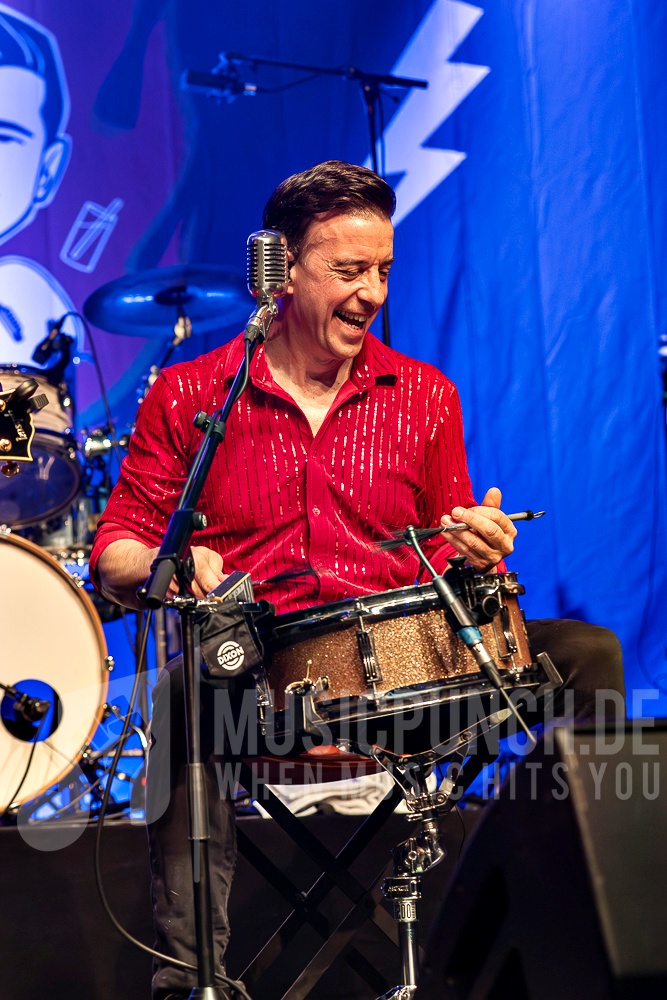 Basti, inzwischen wieder topfit, brachte mit charmanten bayerischen Einlagen zusätzliches Lokalkolorit auf die Buhne und führte mit viel Humor und Herz durch den Abend. Die Band überzeugte mit ihrer gewohnten Retro-Ästhetik: Haartollen, Lederjacken & Retromikros – der Look saß, der Sound erst recht.