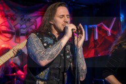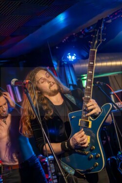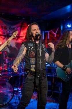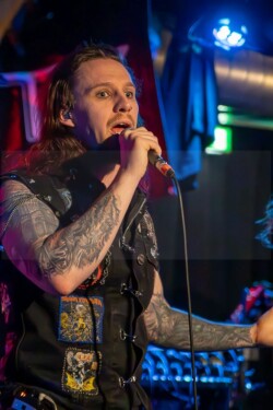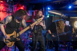 Und Sänger Matthias „Schenky“ Schenk hat nicht nur seine Songs gut drauf, er ist halt einfach der geborene Entertainer. Nicht nur das Publikum, auch seine Band hat er fest im Griff und dabei immer einen flotten Spruch auf den Lippen. Musikalisch ging es mit Eye Of The Storm, Dark Orbit, Stand Your Ground, Travelers In Time oder Media Zombies zur Sache. Bei Media Zombies durfte sogar Kumpel Markus mit Schenky auf der Bühne performen – ein nachträgliches Geburtstagsgeschenk, quasi. Die Fans waren begeistert, alle machten mit und auch wenn der Sound nicht immer perfekt war – dafür war die Stimmung umso besser. Before The Day, Forever, Ruin, The Line, Sons Of Eternity und Revolution sorgten nochmal für Partylaune bevor mit „In Silence“ ein toller, musikalischer Abend zu Ende ging. Ein tolles Konzert, wo auch mal der Underground im Fokus stand. Auf jeden Fall mehr davon!