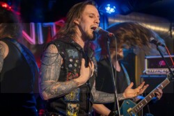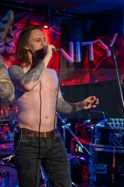 Wenn sich sieben Fotografen um drei Bands in einer Mini Location scharen, die gerade mal – mit gutem Willen – 80 – 100 Mann umfasst – müssen die Bands entweder weltbekannt oder einfach musikalisch top sein. Letzteres war der Fall, als Sons Of Eternity aus dem Großraum Kitzingen/Würzburg zum Konzertabend am Valentinstag im Kopf und Kragen in Fürth riefen.Und alle waren zahlreich gekommen. 80 Mann konnte man am Schluss in den gemütlichen kleinen Club zählen, der schon fast so etwas wie Wohnzimmerfeeling hervorrief.