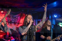 Gegen 21 Uhr ging es dann mit etwas mehr Enthusiasmus im Publikum weiter, hatten doch Don´ t Drop The Sword die Bühne geentert. Die Bayern haben sich dem Power- und Speedmetal verschrieben, und das mit Erfolg. Etliche Gäste im Publikum kannten die Jungs um Sänger Anti schon von anderen Gigs und ihr Ruf als „tolle Live-Band“ eilt ihnen voraus. Die Fanbase wächst und auch wenn man gewisse Ähnlichkeiten zu Blind Guardian nicht verleugnen kann, scheint sich Don´ t Drop The Sword langsam aus den großen Schatten der Krefelder zu lösen und ihre eigene Powermetal Geschichte zu schreiben. Besonders im hymnischen Midtempo fühlen sich die Jungs wohl und können dies auch gut rüberbringen, wie auch in Album Nummer 2 „Age Of Heroes“ zu hören ist.