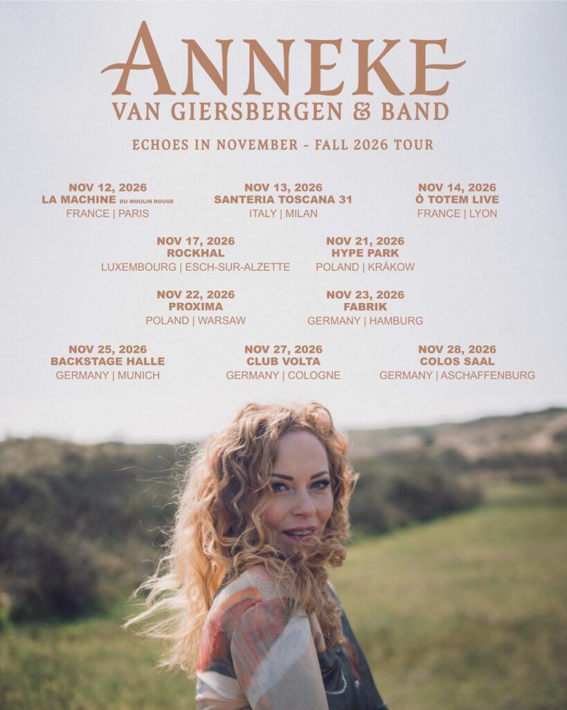Im Herbst wird Anneke die neue Musik europaweit live präsentieren. Im Rahmen der neu angekündigten Tour wird sie auch für vier Konzerte nach Deutschland kommen. „In den letzten Jahren habe ich häufig im Ausland gespielt, aber dies wird das erste Mal seit einem Jahrzehnt sein, dass ich mit meiner achtköpfigen Live-Band für eine Reihe von Auftritten außerhalb der Niederlande unterwegs bin. Ich bin unglaublich aufgeregt darüber“, freut sich Anneke. „Wir werden eine Auswahl von Songs aus meinen neuesten Veröffentlichungen spielen, aber das Publikum kann auch eine Reihe von Highlights aus meinem gesamten Katalog erwarten.“
