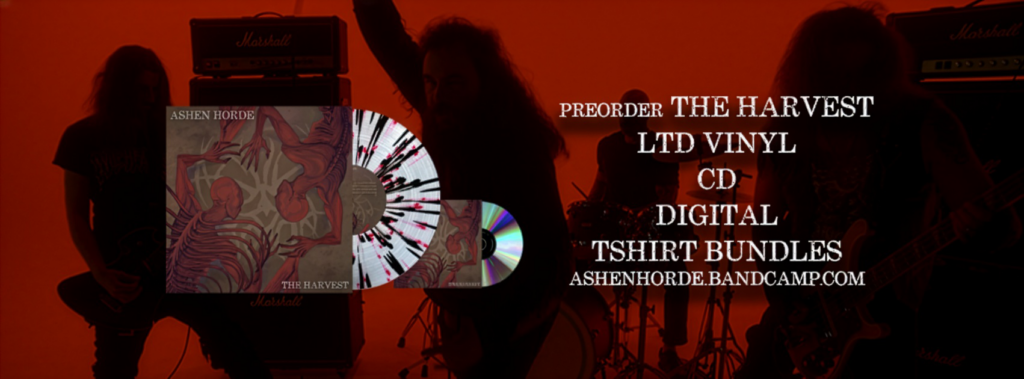 „The Harvest“ markiert einen Wendepunkt für Ashen Horde. Nach einem Jahrzehnt als studioorientiertes Projekt bereitet sich die Band darauf vor, im Mai ihre allerersten Live-Shows zu spielen, zeitgleich mit der Veröffentlichung des Albums. Es ist auch das erste vollständige Album, auf dem Chamberlain zu hören ist, dessen dynamische Bandbreite dazu beigetragen hat, die klangliche Identität der Band neu zu gestalten.