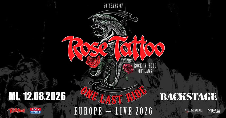Keine geringere Band als das Quintett Rose Tattoo gastiert, am 12.08.2026, für einen Gig im Münchner Backstage. Die Band feiert heuer 50-jähriges Bühnenjubiläum und sind in all den Jahren noch immer nicht müde.