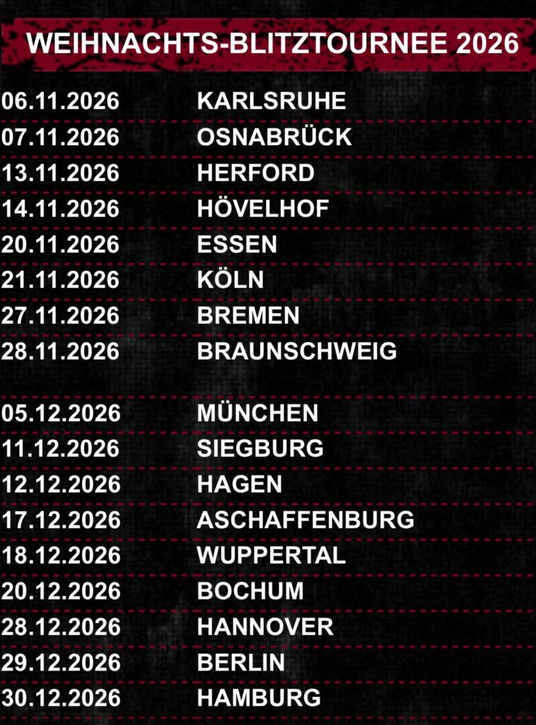 Stand der Gigs – für die WBT‘26. Hier und da hat der Vorverkauf begonnen. Wir hoffen, wir sehen uns, wenn die Zeit gekommen ist, gesund und munter wieder. Wenn sich der gedankliche Vorhang hebt und
