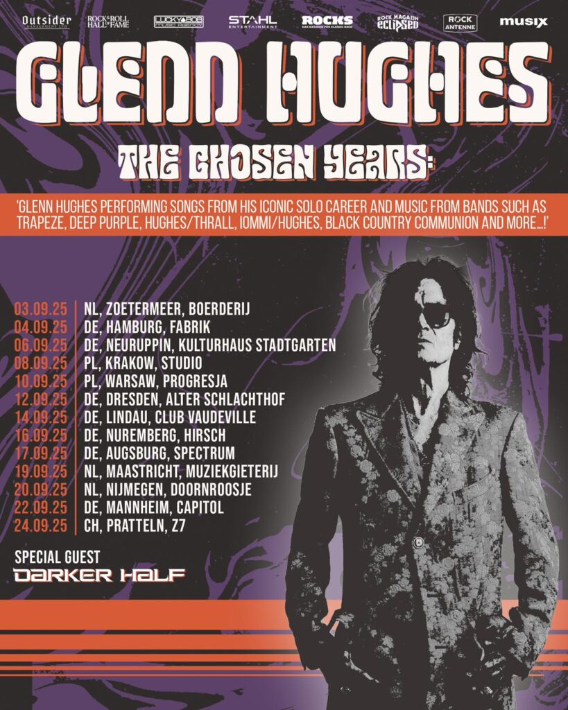 In diesem Jahr wird Glenn Hughes auch viel durch Europa und Südamerika touren. Die Tour „The Chosen Years“ beginnt am 2. September im niederländischen Zoetermeer und endet am 29. November in Bogota, Kolumbien.