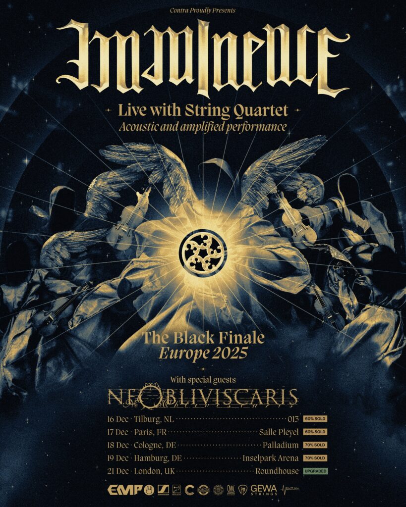 „The Black Finale“ wird im Dezember 2025 an fünf exklusiven Terminen in Europa stattfinden. Exakt zehn Jahre nach den ersten Shows in diesen sorgfältig ausgewählten Städten, zollen Imminence damit ihrer Reise Tribut – vom Anfang bis hin zu den renommiertesten Bühnen Europas.