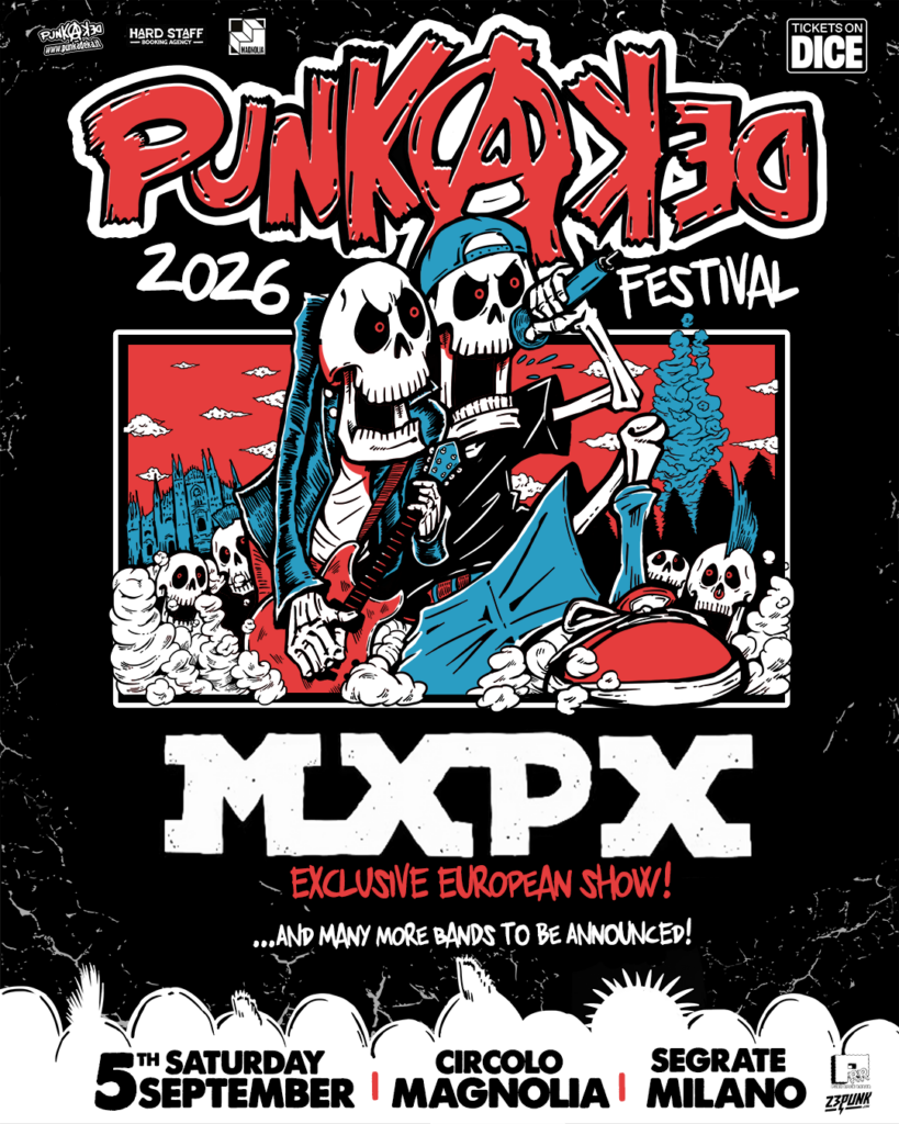MXPX kehren für einen absolut exklusiven Auftritt nach Italien zurück: das einzige europäische Konzert findet auf der Bühne des Punkadeka Festivals statt – mit der Originalbesetzung der Band. Mehr als zehn Jahre nach ihrem letzten Europa-Auftritt ist die legendäre amerikanische Punk-Rock-Band bereit, das Publikum mit einer rasanten Skate-Punk-Explosion zu entfachen und all die Energie auf die Bühne zurückzubringen, die sie zu einem Fixpunkt der weltweiten Szene gemacht hat.